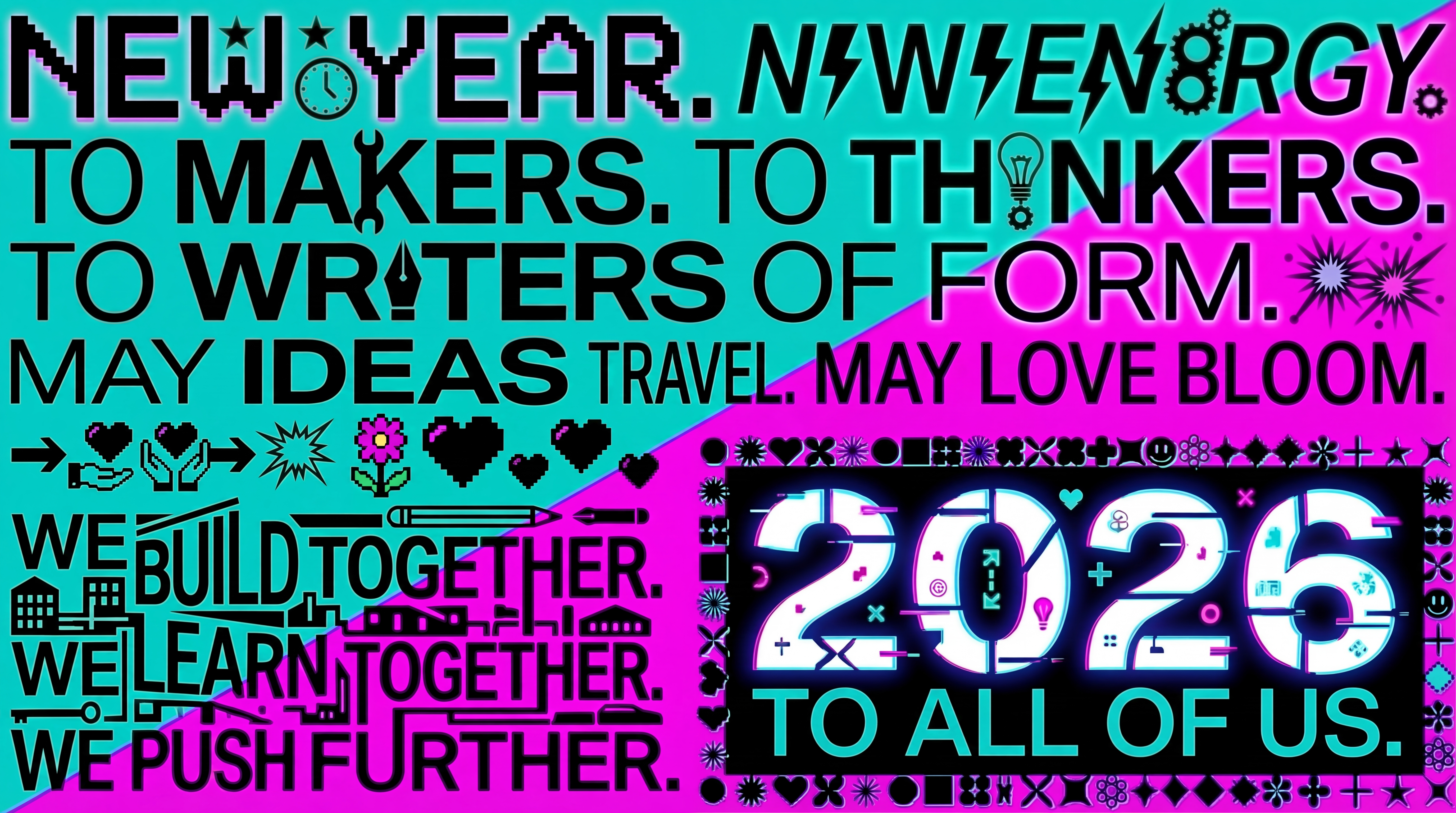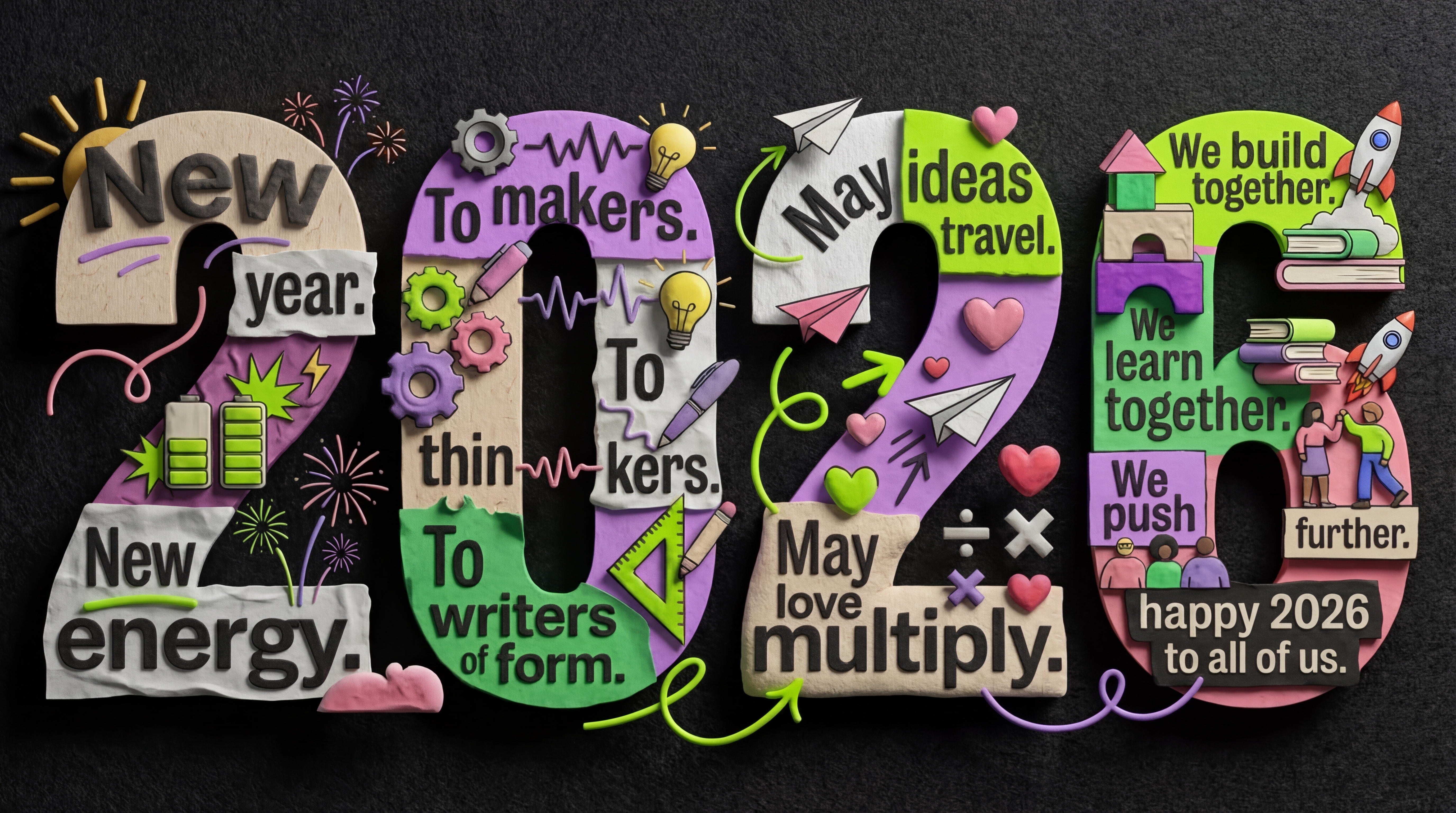 They are simple videos of New Year wishes for creatives, created using the same approach of the AI typography workflows explained in the ebooks—where letters carry visual meaning.